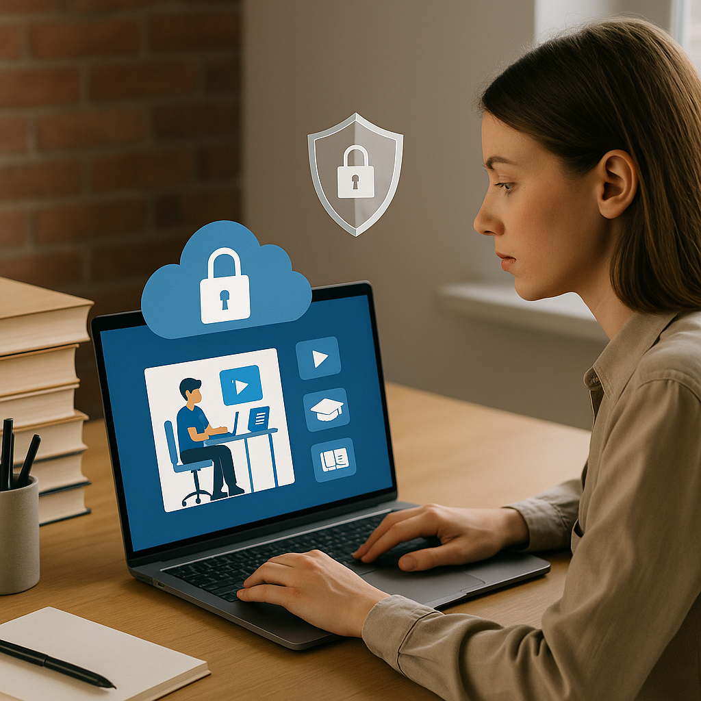 Su ecosistema de aprendizaje combina arquitectura 100% en la nube, cifrado avanzado y control de acceso por roles, garantizando que cada interacción con la plataforma sea segura, trazable y conforme a las normativas internacionales de privacidad.