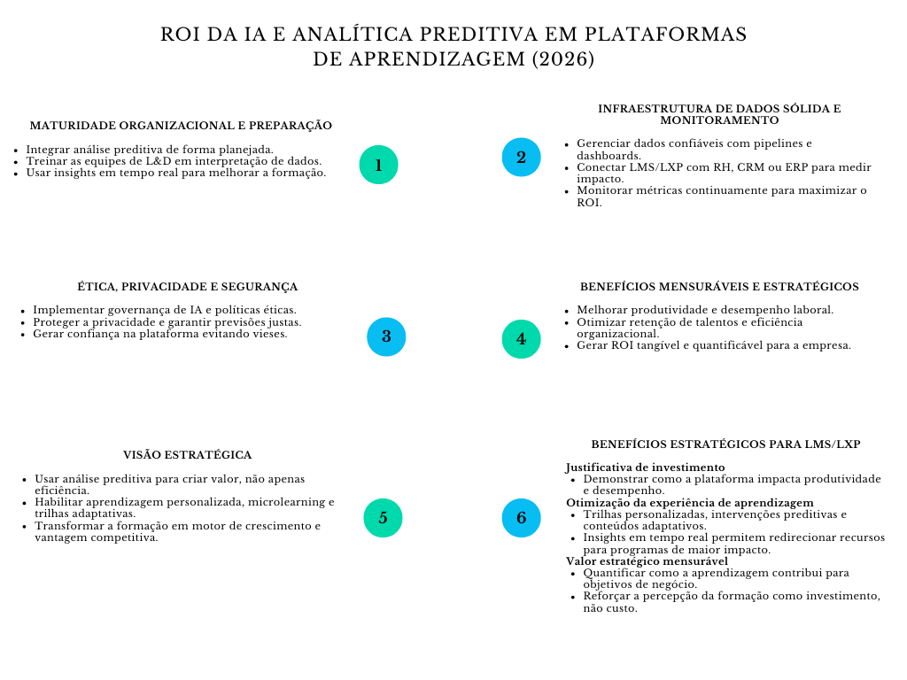 Diagrama ROI da IA e analítica preditiva em plataformas de aprendizagem (2026)